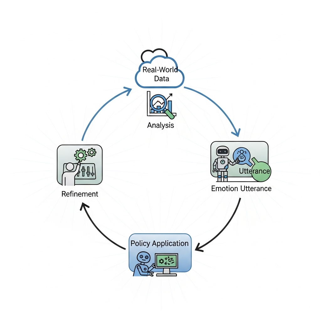 A system that manages emotions as persistent states rather than momentary reactions throughout conversational flow. Emotions are represented in a multidimensional vector space (e.g., the PAD model), with temporal changes computed via accumulation, decay, and transition logic. This maintains emotional consistency and immersion while continuously informing speech, voice, and facial generation modules in real time.